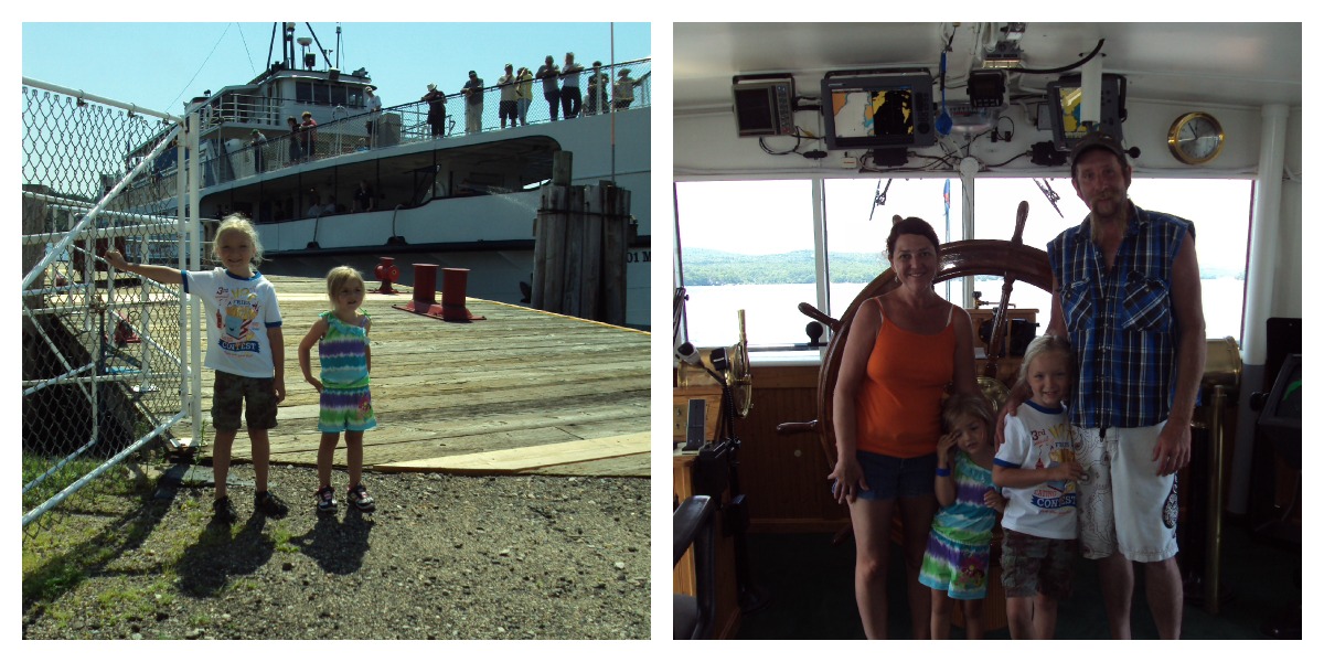 Waiting to get on the Mt. Washington and us visiting the wheel house
